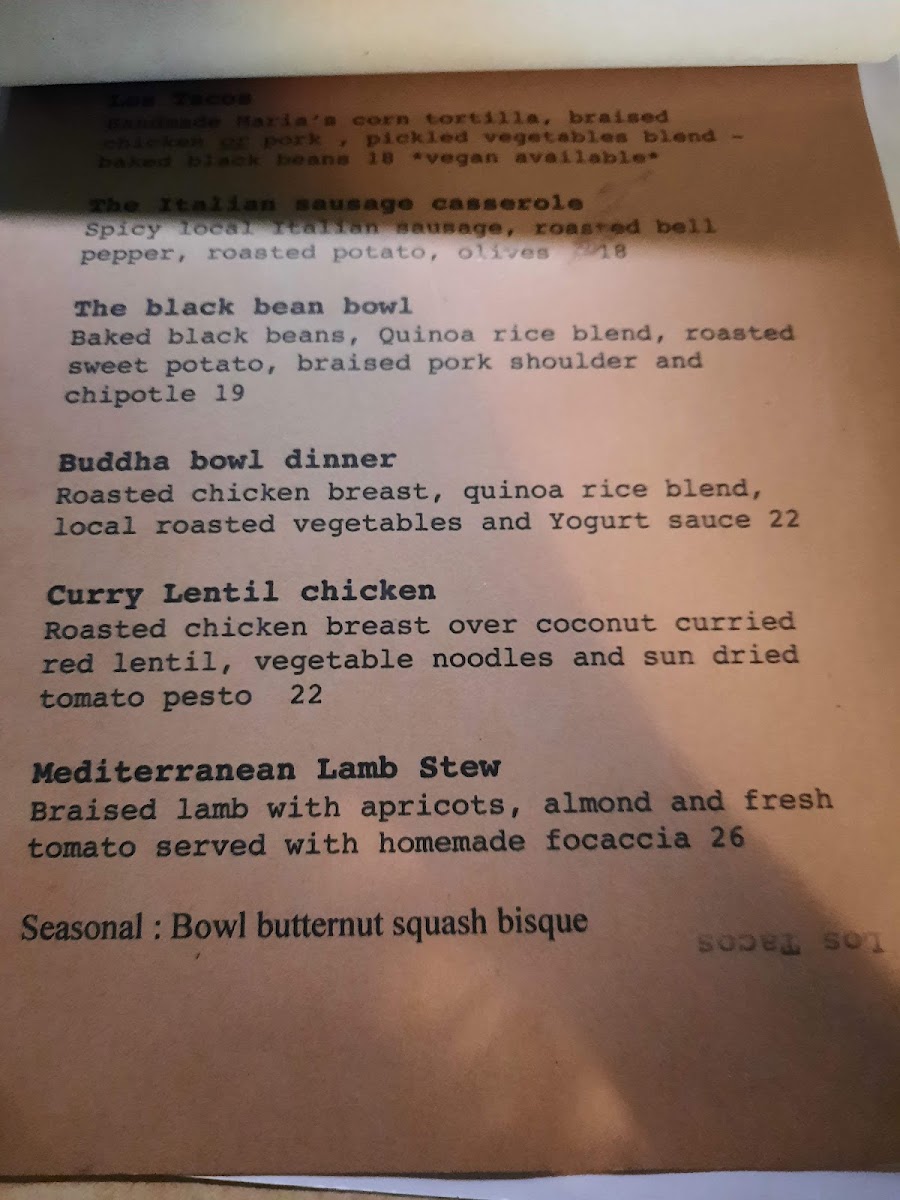 Roasted chicken breast, quinoa rice blend, local roasted vegetables and yogurt sauce